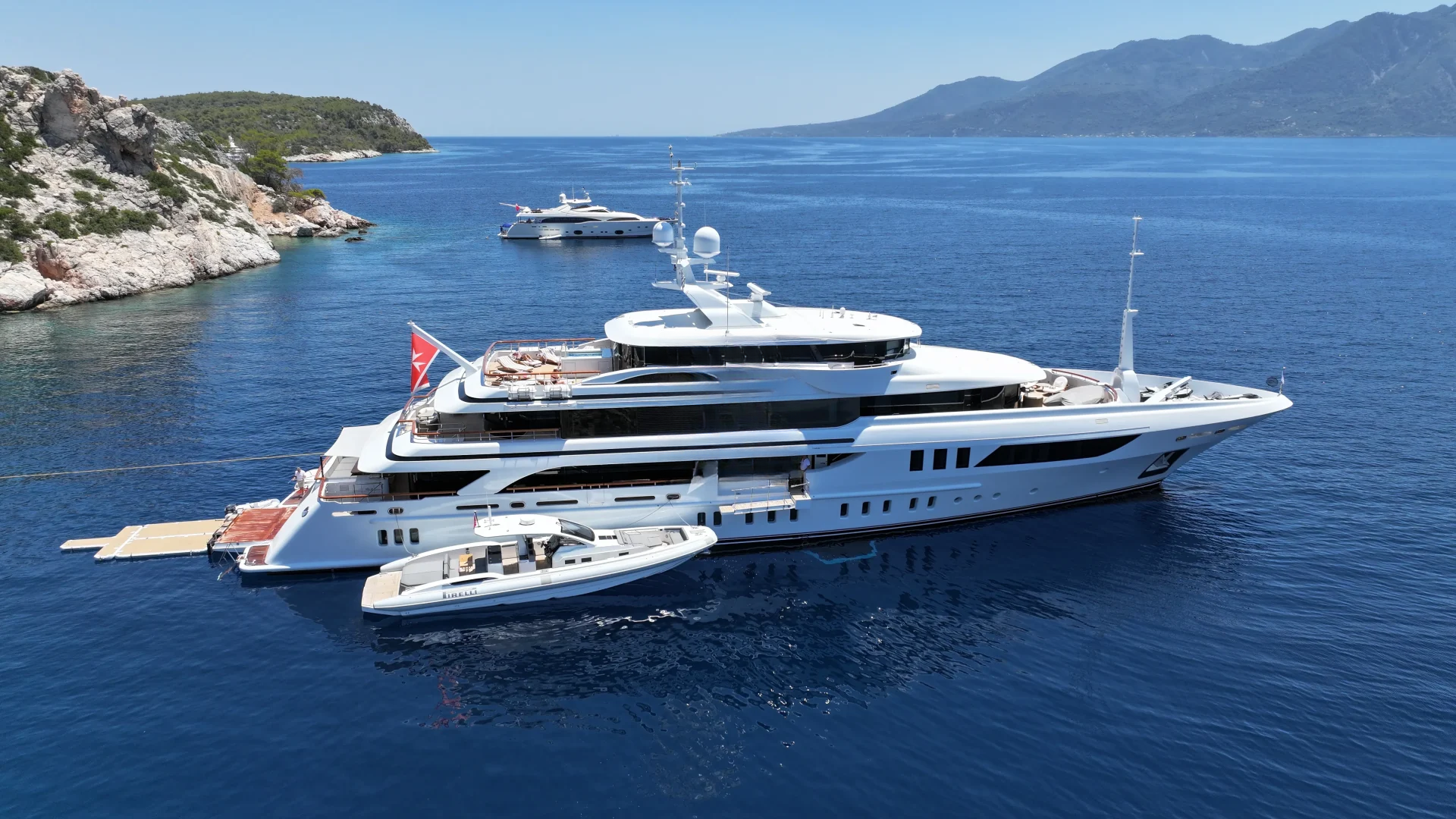 From water-based adventure to top-tier service, AELIA delivers on every front. She carries the most extensive collection of water toys in the Eastern Mediterranean, including the high-performance Pirelli P50 chase tender, ready to whisk guests to remote coves and islands. Whether wakeboarding, diving, or relaxing aboard the tender, the fun is limitless. Her charter-savvy crew of 15, many of whom have worked together for years, are attuned to anticipating needs before they’re even voiced, offering a level of service that is polished, friendly, and truly white glove.