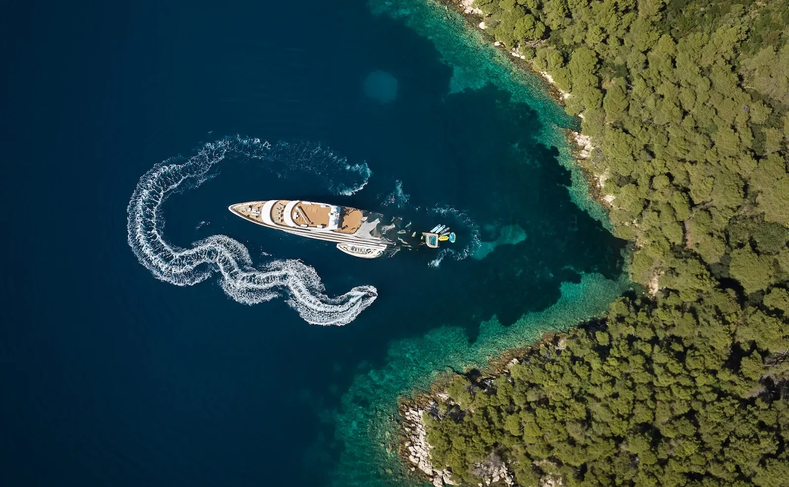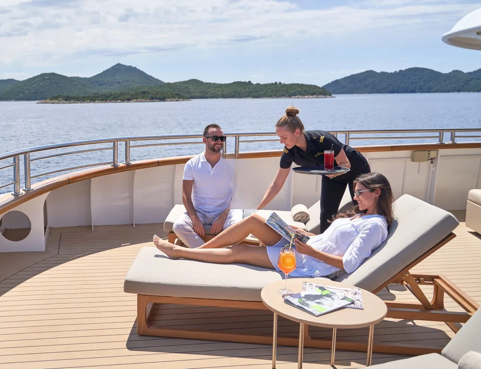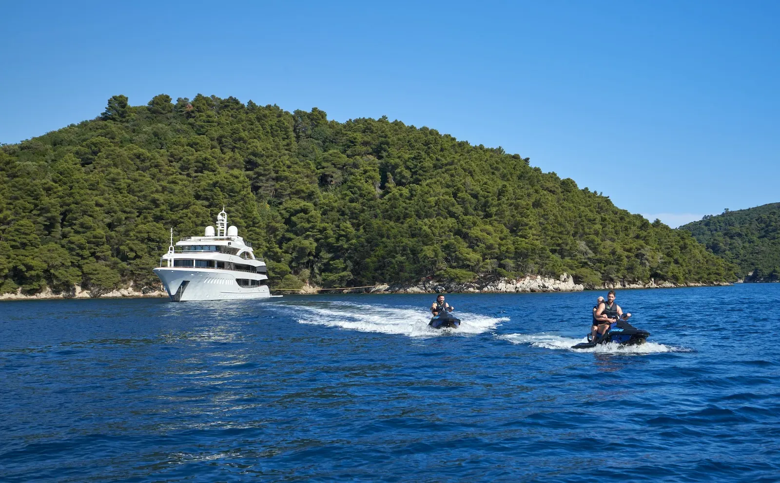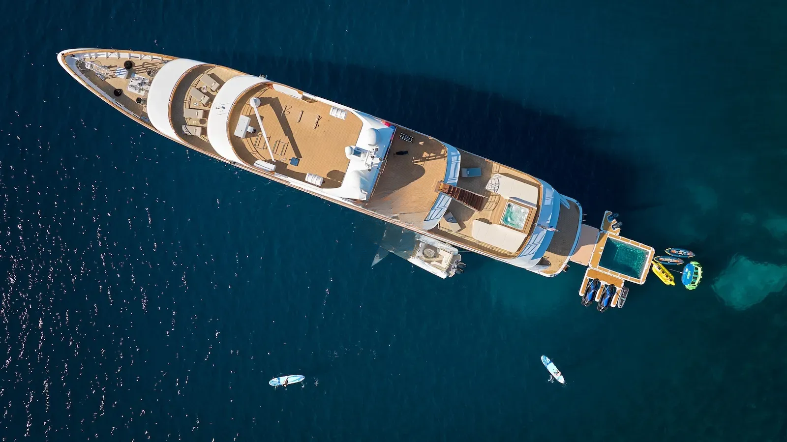 For those who are more active, there is a large outdoor gym on the top deck featuring a treadmill and exercise bike along with a TRX, pull-up bar, free weights and yoga mats. There is an 8.7m Marine Mito chase boat as well as a 5m Brig tender, that allows guests to fully explore the stunning surroundings or try out water sports. AETERNA has an extensive selection of water toys, from Seadoo jetskis, Seabobs and waterskis, to a choice of towables for those who just want to have fun. There is an extendable swim platform and an inflatable netted sea pool, which creates a safe and secure swim area for guests. Anyone preferring a slower pace will be able to take advantage of the fishing equipment, lie back on the floating mattresses, or go off on a paddleboard to explore the local coastlines.