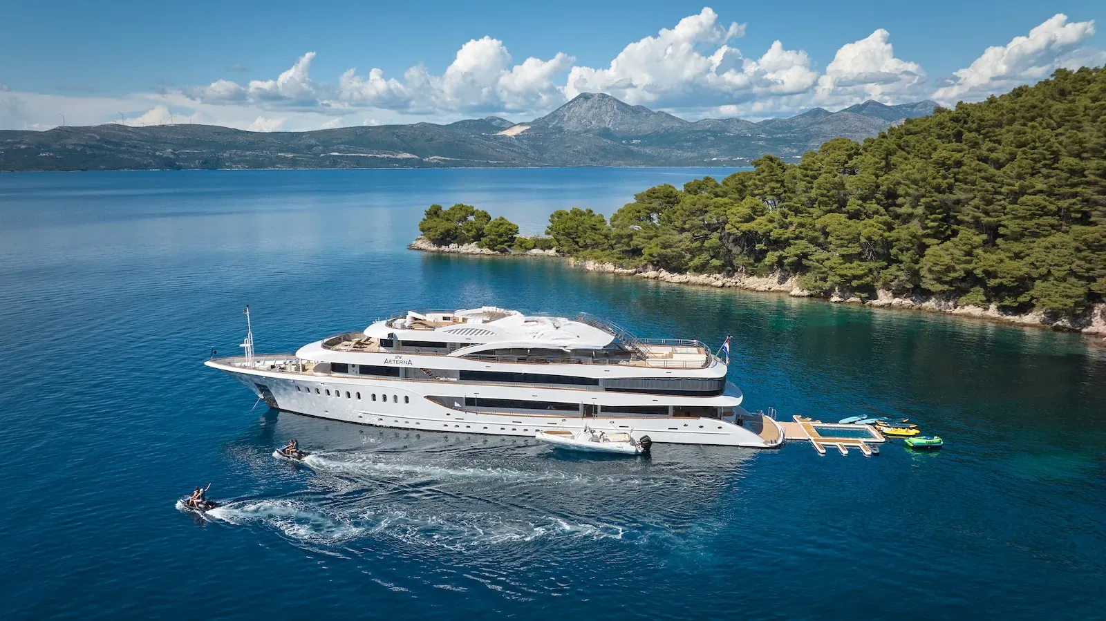 The 53.3m AETERNA (previously known as EXCELLENCE ADRIA) was launched in 2020, and has undergone an extensive refit over the winter of 2023/2024. This stunning, modern yacht offers guests luxurious accommodation and top class amenities over 4 spacious decks. She is perfect for a large group, able to accommodate 20 guests comfortably in 10 staterooms and has a capacity to day cruise with up to 36 guests onboard. She is packed with facilities offering charterers entertainment, adventure and relaxation throughout their trip. Her knowledgable Captain and crew are delighted to share their love of their native Croatian waters and will ensure that you always receive the highest levels of service.