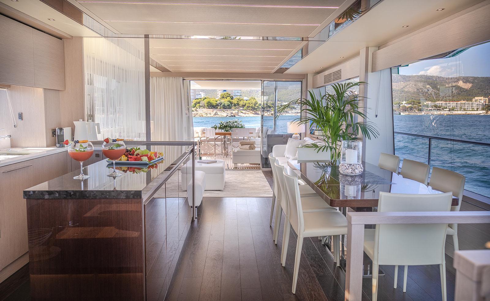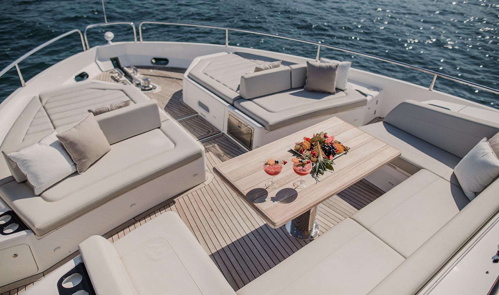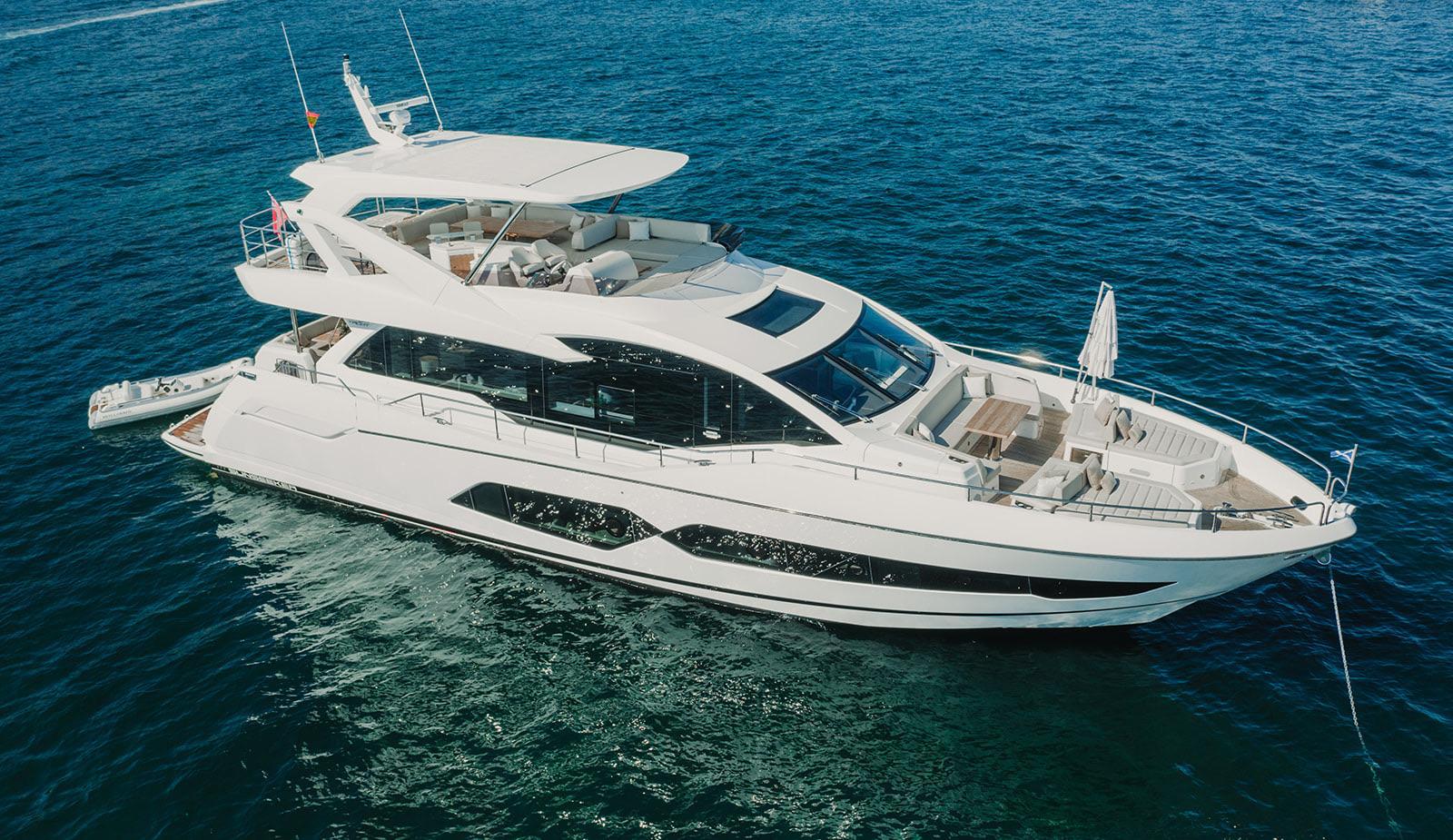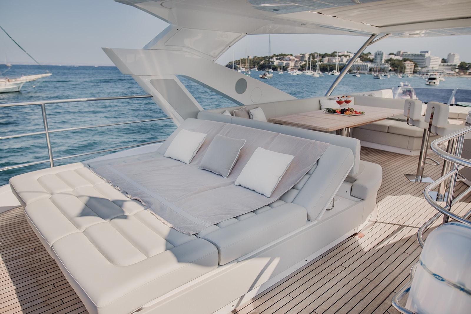 Lady M is a sunseeker 76 designed for relaxed luxury cruising. Spacious outdoor areas, multiple sunbathing zones and a refined interior make ir ideal for enjoying Mallorca in total comfort. With four cabins and generous living spaces, it offers a seamless balance between style, space and effortless yachting.
