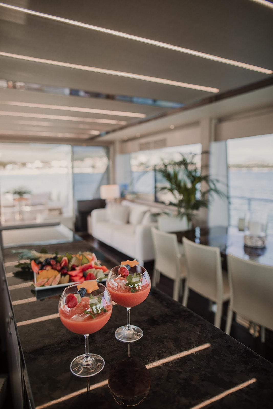 A standard charter includes the yacht, professional crew, and onboard amenities. Additional expenses such as fuel, provisioning, berthing, and bespoke services are managed transparently through an Advance Provisioning Allowance (APA), with full accounting provided.
