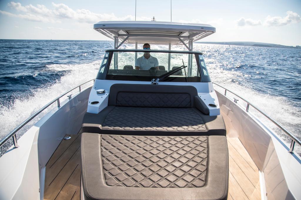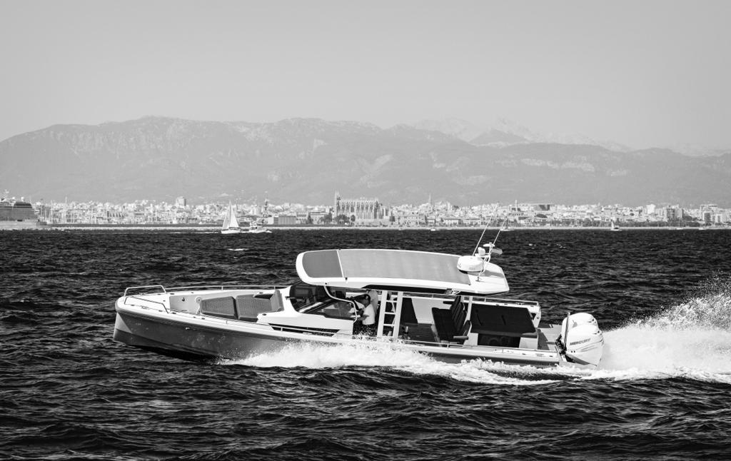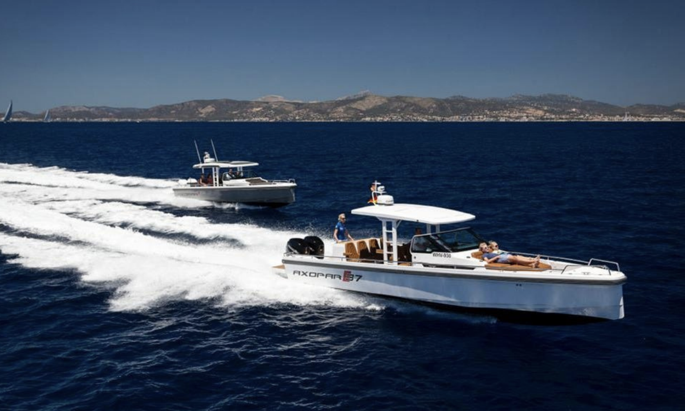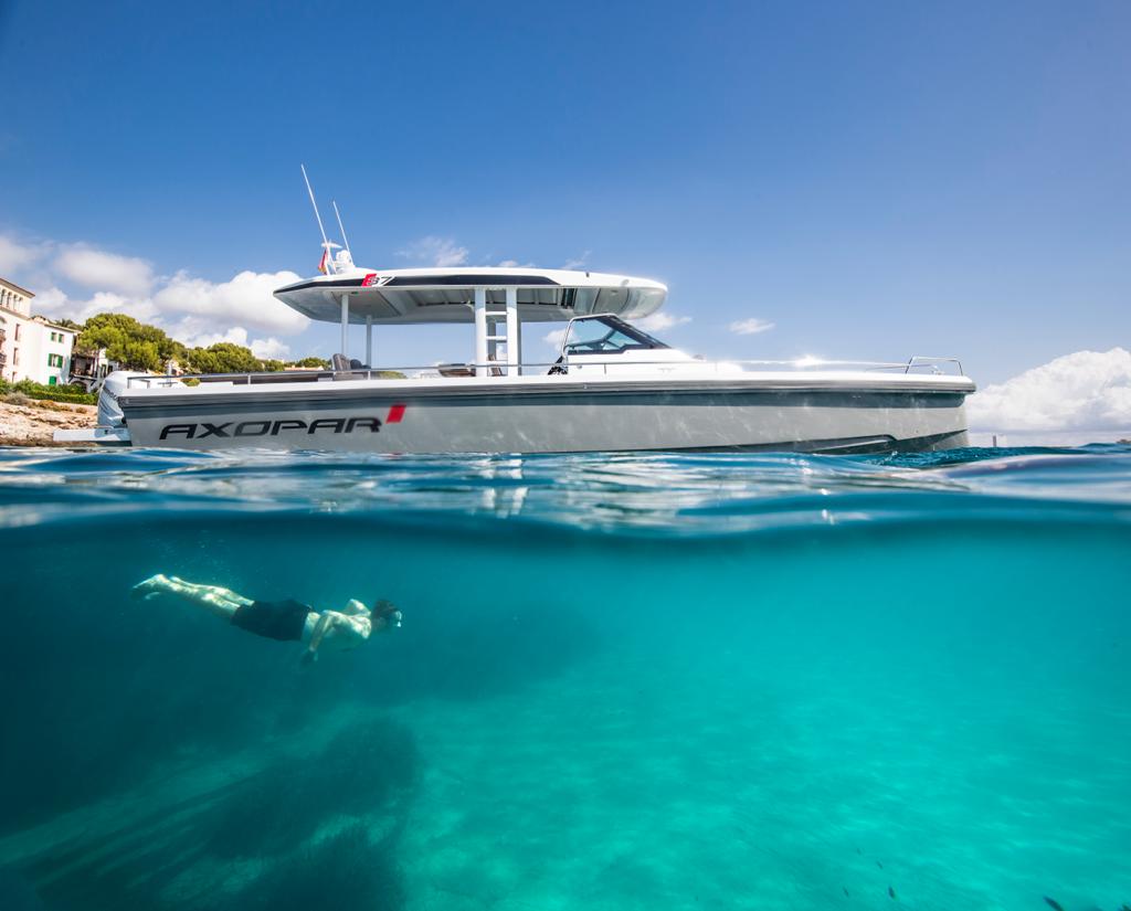 Moet, an Axopar 37 T-Top, is a sleek and versatile day boat, ideal for discovering Mallorca´s coastline with ease and comfort. A smooth, stable ride combines with an open cockpit designed for relaxed socialising, offering seating for seven around a large. A forward sunbed and a cozy cabin with sleeping space for two, toilet and sink complete an effortless dat at sea.