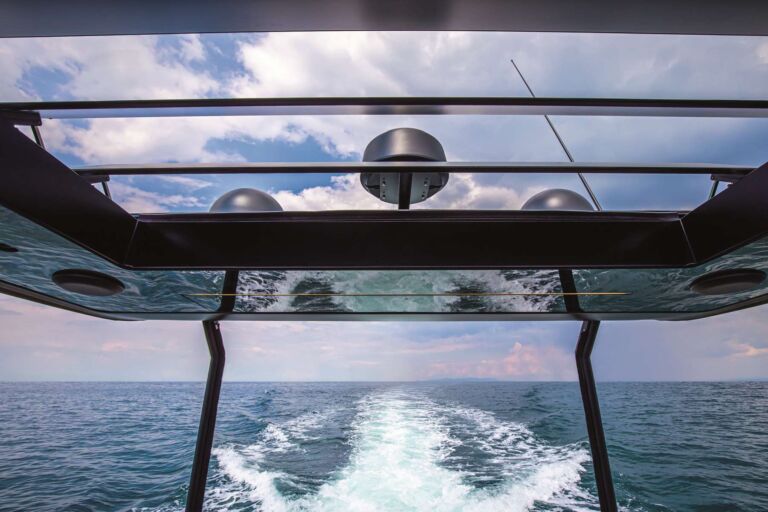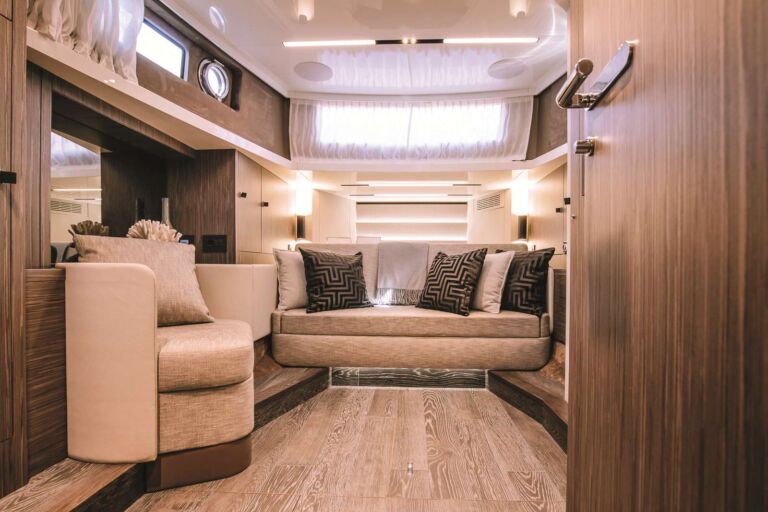 Experience agile, responsive handling with twin Volvo Penta D6-IPS650 engines (2 x 480 HP), achieving 33 knots max and 25-knot cruise over 200 nm range – enhanced by joystick, proportional bow thruster and Humphree trim assist.