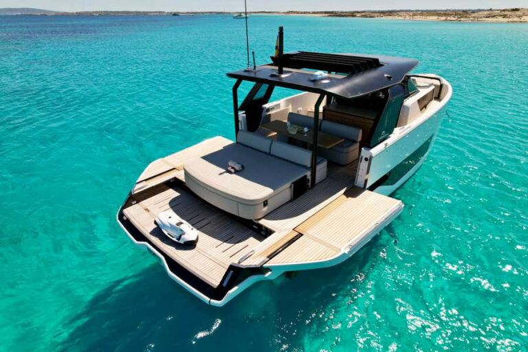 Comforts for 4 guests (1 cabin) or up to 14 passengers: Retractable anchor, autopilot, VHF-DSC, dashboard covers, privacy screens and premium upholstery like microfibre, real leather and Silvertex exteriors.